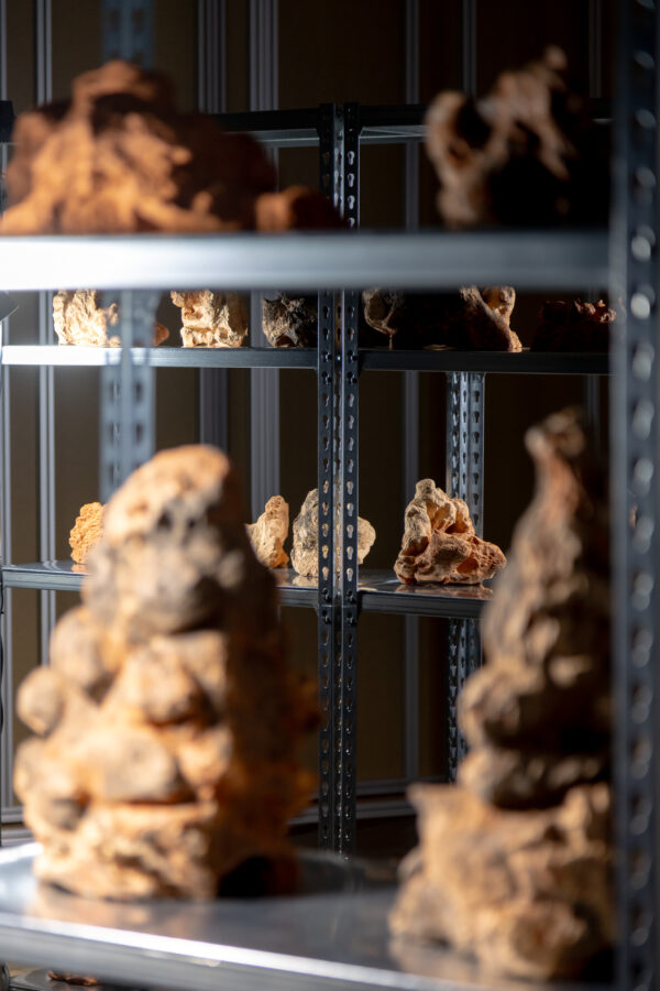 The exhibition design echoes this gesture, creating a layered spatial layout. Its primary intention is to respond to the profound sense of time, to the experiences, stories and legacies that each artwork crystallises. Thus, the works are conceived as embedded within the space; they exist in relation to one another.