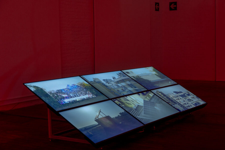 For the exhibition As Stones on Their Palms, Embers and Flame, forty five degrees was commissioned to develop the exhibition design. The show explores the entanglement of ruination with histories of anticolonial resistance, uprising, revolution, and political radicalism across the Mediterranean. Curated by Chiara Cartuccia, these tensions are composed in the exhibition through the resonant vocabularies of four artists: Marianne Fahmy, Joyce Joumaa, Huda Takriti, and Hasan Özgür Top.