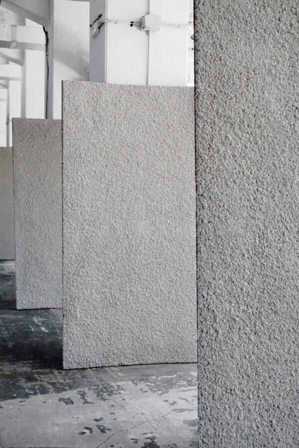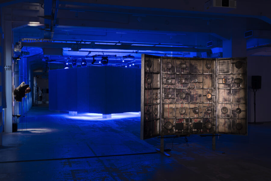 The exhibition design for RESILENCE was conceived and developed by forty five degrees in response to a specific challenge: the need to acoustically adapt a 2,000-square-meter concrete hall, whose reverberation levels were unsuitable for a sound-based exhibition. This constraint became the conceptual challenge and starting point, asking a fundamental material question: